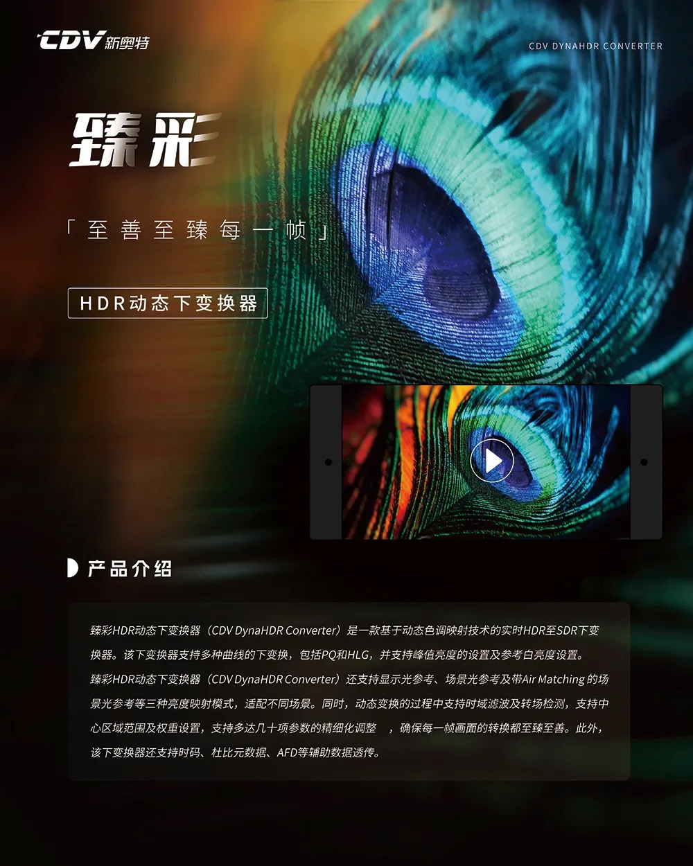 另外,今年获得“BIRTV展览会推荐项目”产品的臻彩HDR动态下变换器(CDV DynaHDR Converter)也被带到了本次展会现场。